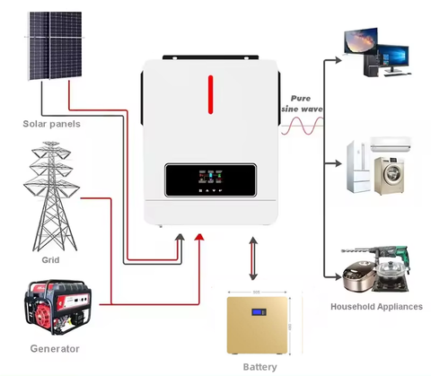 インバータメーカーMPPTハイブリッドインバーターグリッド12VDC 1.2KW太陽エネルギーシステム60Aソーラー充電器LFPバッテリー純正シングル